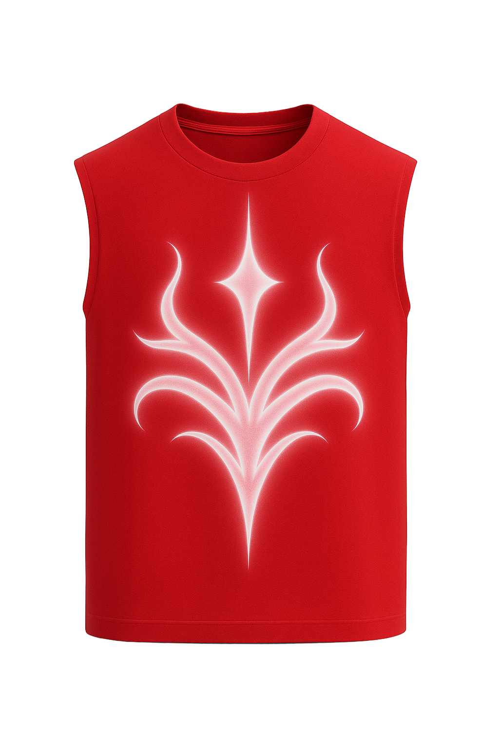 Turn heads with the SHREEMSY Red Glow Tribal Vest, designed with a smooth, luminous white tribal graphic that radiates against a bold red base. The soft glow effect gives the artwork a futuristic, ethereal look—perfect for modern streetwear styling.